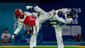 Olahraga ini dikenal dengan teknik tendangan yang cepat dan kuat, serta memiliki sistem latihan yang terstruktur. Selain memberikan manfaat bagi kebugaran fisik, taekwondo juga membantu membentuk karakter melalui nilai-nilai disiplin, rasa hormat, dan pengendalian diri.